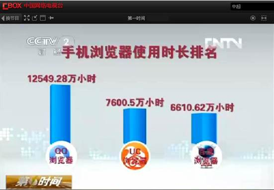 移動互聯網的競爭已經全面展開,央視CCTV-2《第一時間》今日報道,三年磨一劍的QQ瀏覽器已處行業領先地位,手機瀏覽器用戶和流量目前正加速向互聯網巨頭轉移。