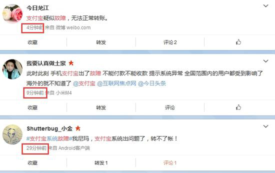 在支付寶官方微博的評論中,不少網(wǎng)友都表示目前支付寶的轉(zhuǎn)賬功能已經(jīng)無法使用了,在網(wǎng)絡(luò)連接正常的情況下,進(jìn)行轉(zhuǎn)賬等操作時,會出現(xiàn)“系統(tǒng)錯誤”、“網(wǎng)絡(luò)不給力”等字樣,導(dǎo)致操作失敗。不過紅包功能卻能正常使用。也有網(wǎng)友表示,他們的紅包功能也出現(xiàn)問題,整個支付寶基本上處于癱瘓狀態(tài)。