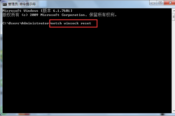 10、如果到這一步還未能解決dns服務器未響應問題,那就直接以管理員身份運行dos命令,在dos命令行下運行“netsh winsock reset”命令。